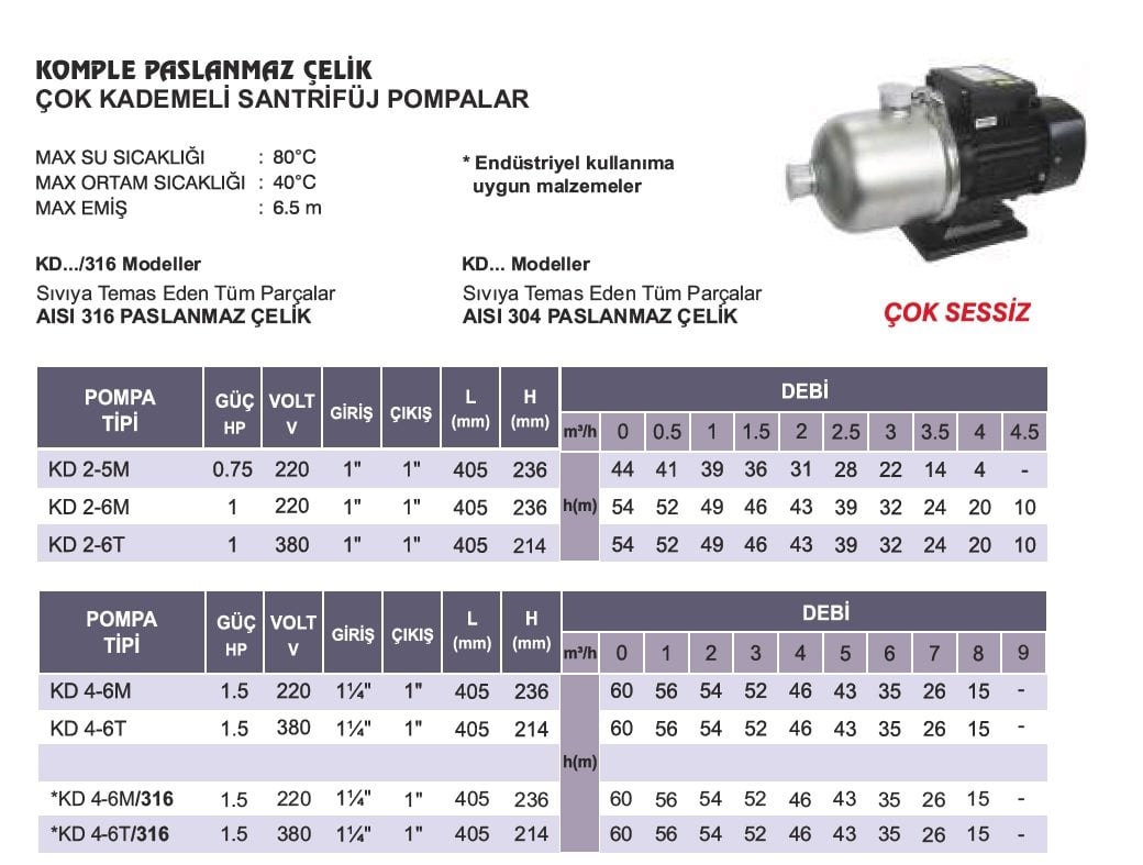 ATLANTİS KD 4-6T/316 - 1.5 HP 380V KOMPLE PASLANMAZ ÇELİK ÇOK KADEMELİ SANTRİFÜJ POMPA