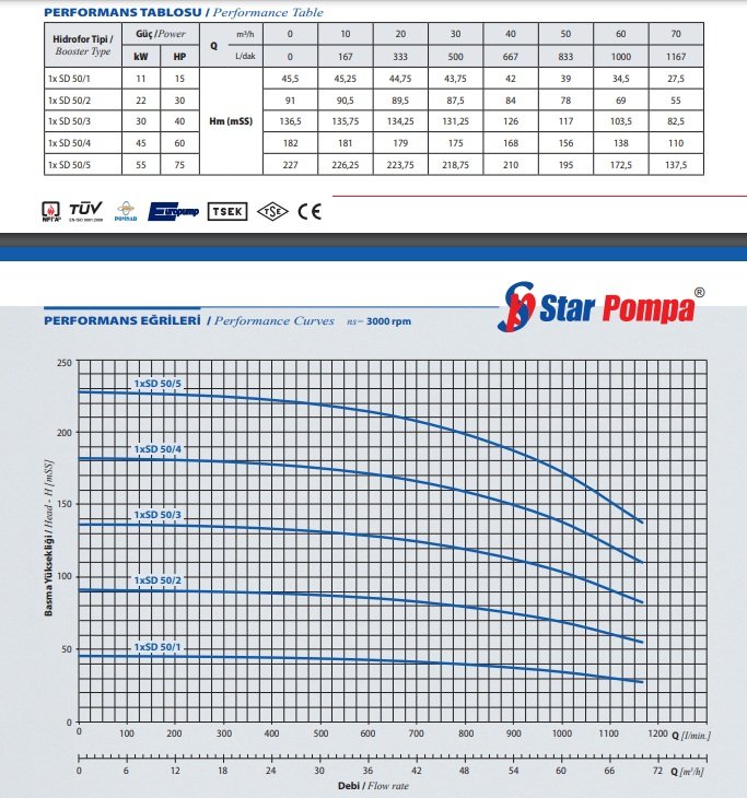 - STAR 1 SD 50/5 75.HP 380V DİK MİLLİ TEK POMPALI ENDÜSTRİYEL TİP HİDROFOR